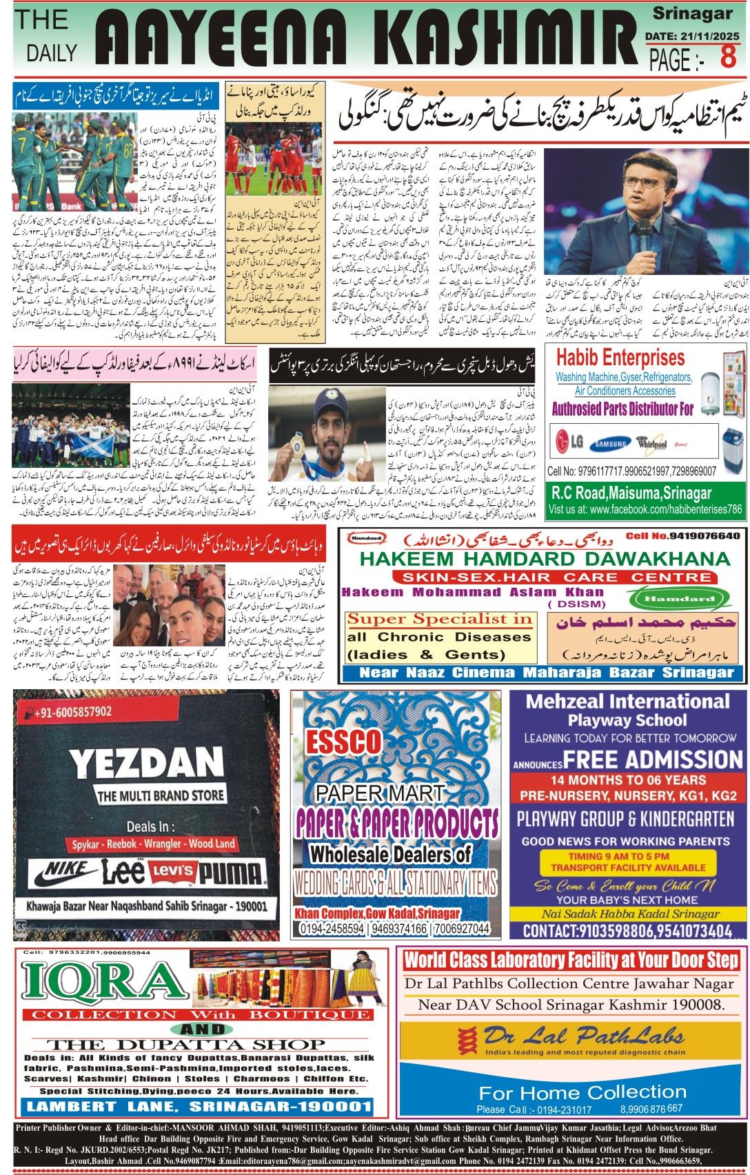 E PAPER DAILY AAYEENA KMR. Page: 8 November 21, 2025 << First << 8 >> Last >> Page 1Page 2Page 3Page 4Page 5Page 6Page 7Page 8 × E PAPER DAILY AAYEENA KMR. << First << 8 >> Last >> 12345678