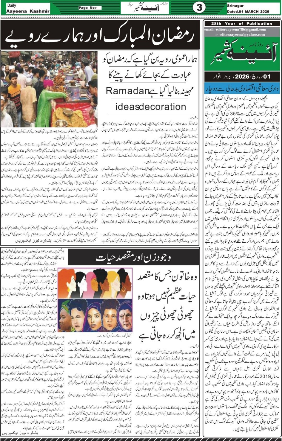 E PAPER DAILY AAYEENA KMR. Page: 3 March 01, 2026 << First << 3 >> Last >> Page 1Page 2Page 3Page 4Page 5Page 6Page 7Page 8 × E PAPER DAILY AAYEENA KMR. << First << 3 >> Last >> 12345678