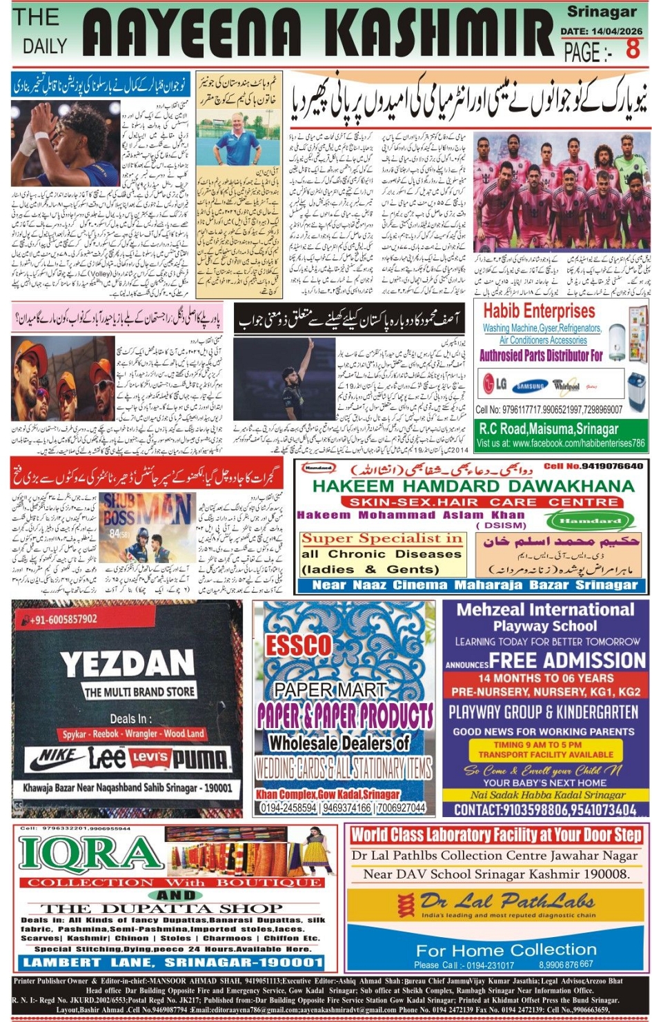 E PAPER DAILY AAYEENA KMR. Page: 8 April 14, 2026 << First << 8 >> Last >> Page 1Page 2Page 3Page 4Page 5Page 6Page 7Page 8 × E PAPER DAILY AAYEENA KMR. << First << 8 >> Last >> 12345678